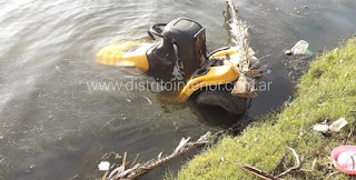 | El tractor de cortar pasto tirado en la laguna |